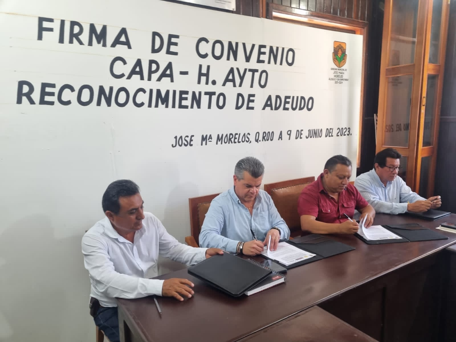 PODER Y CRÍTICA | REDACCIÓN | La Comisión de Agua Potable y Alcantarillado (CAPA) y el Ayuntamiento de José María Morelos, signaron convenio de reconocimiento de adeudo, como resultado de los esfuerzos de coordinación entre el Gobierno del Estado con los gobiernos municipales, para promover la regularización de compromisos que redundan en justicia social y mejora de los servicios.