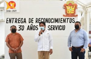 Chetumal, Q. Roo, Jueves 01 de Julio de 2021, poderycrítica.- Esta mañana, el Presidente Municipal de Othón P. Blanco, Otoniel Segovia Martínez, hizo entrega de reconocimientos a un total de 10 trabajadores por 30 años de servicio ininterrumpido.
