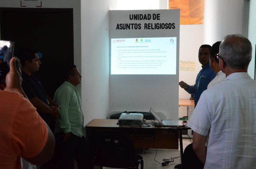 Lo anterior siguiendo los lineamientos federales y estatales, el subdirector de Salud Física y Mental de Solidaridad, Bruno Espadas, impartió esta plática de actualización ante autoridades religiosas de Solidaridad, quienes agradecieron al gobierno de Solidaridad el interés por la salud de su comunidad. El encuentro estuvo encabezado por la secretaria de Justicia Social y Participación Ciudadana, Deyanira Martínez Estrada y la titular de la Unidad de Asuntos Religiosos, Eréndira Lázaro, quienes les hicieron un respetuoso llamado para que las congregaciones religiosas se sumen a las acciones preventivas para evitar la propagación del COVID – 19.