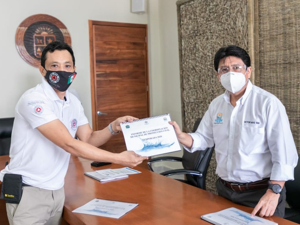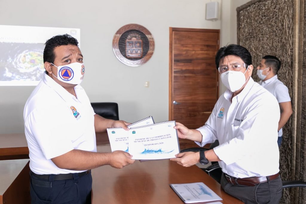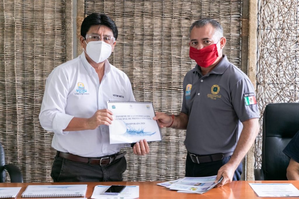 Tulum, Q. Roo, Martes 07 de Julio de 2020, poderycrítica.- El ayuntamiento está preparado para auxiliar a la población en caso de lluvias torrenciales o huracanes, toda vez que se han establecido las áreas de mayor riesgo en el municipio e integrado Subcomités Operativos Especializados para Fenómenos Hidrometeorológicos para la Zona Maya, de Transición y en los poblados de la Riviera Maya, indicó el presidente, Víctor Mas Tah, en una sesión informativa que le rindió Protección Civil.