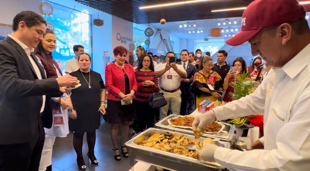 Durante la inauguración de la Exposición Artesanal y Gastronómica en el Punto México, espacio de exhibición de la Secretaría Federal de Turismo, participó el presidente municipal de Bacalar, José Alfredo Contreras Méndez, quien junto con Euterpe Gutiérrez recibió a los invitados de las diversas entidades del país con una degustación de la gastronomía típica del Pueblo Mágico.