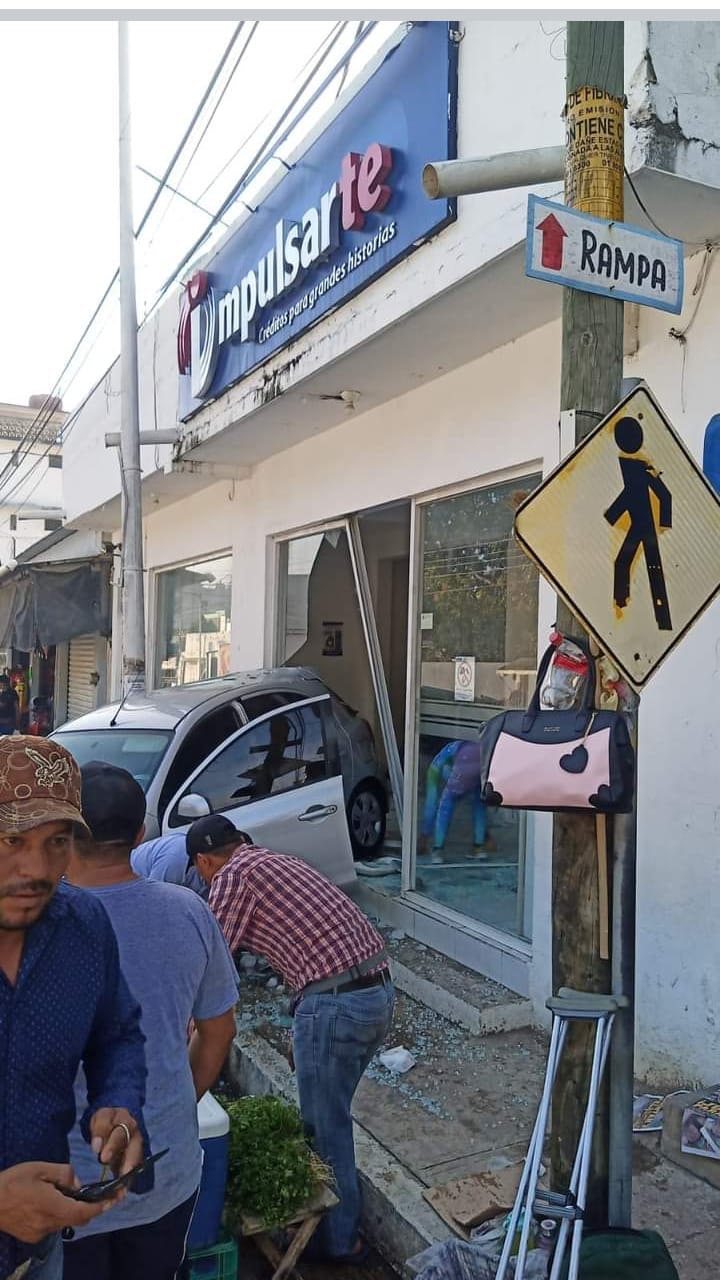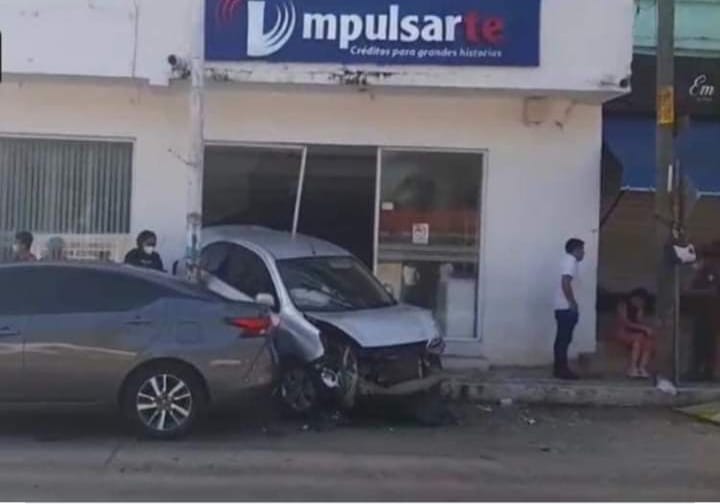 Uno de los presuntos vehículos involucrados en el enfrentamiento quedó incrustado en un establecimiento, a unos pasos de la escuela CBTIS 167.