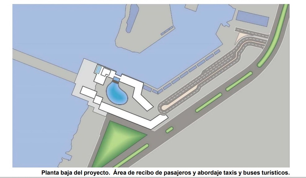 El proyecto de la Terminal para cruceros contempla que en la zona terrestre de 12 mil 648 metros cuadrados se harán acciones de remodelación y la edificación de 12 mil 260 metros cuadrados para la construcción de edificios comerciales en carios niveles, con locales comerciales en cada nivel, una sección en la planta inferior de área de descarga y recogida de pasajeros con capacidad para diez autobuses; también en la planta inferior un área de espera y recogida de pasajeros para taxis.