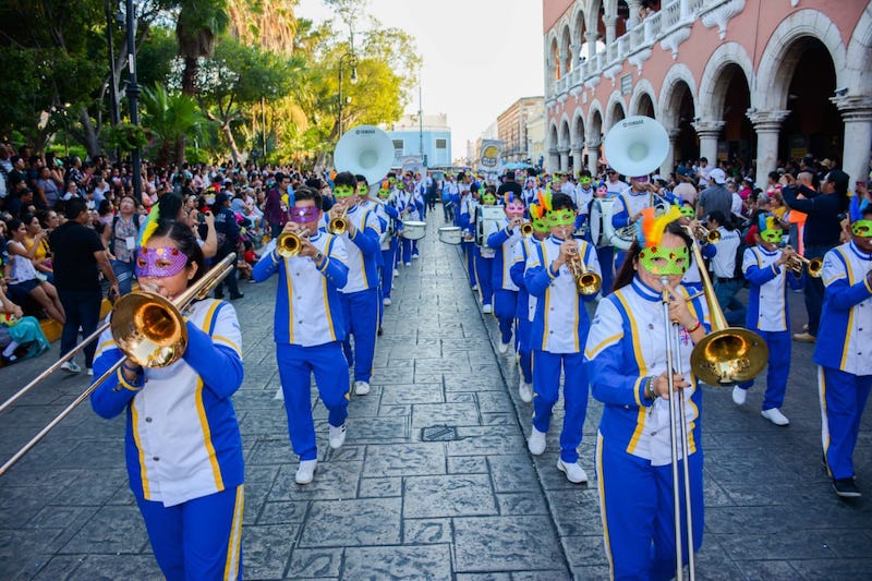 Yucatán, 22 febrero; poderycritica.-La Banda «Muuk’ Báalam» del Centro Estatal de Prevención del Delito y Participación Ciudadana (Cepredey) participó en el inicio de las fiestas carnavalescas en Mérida, dando muestra del trabajo que realiza la dependencia a favor de una cultura de paz, tal como lo ha encomendado el Gobernador Mauricio Vila Dosal.