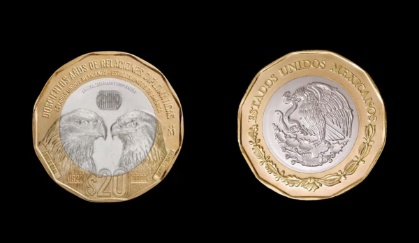 Poder y Crítica | Redacción| Conmemorando el bicentenario de las relaciones diplomáticas de México con Estados Unidos, el Banco de México (Banxico) lanzó el pasado miércoles una moneda de 20 pesos conmemorativa.