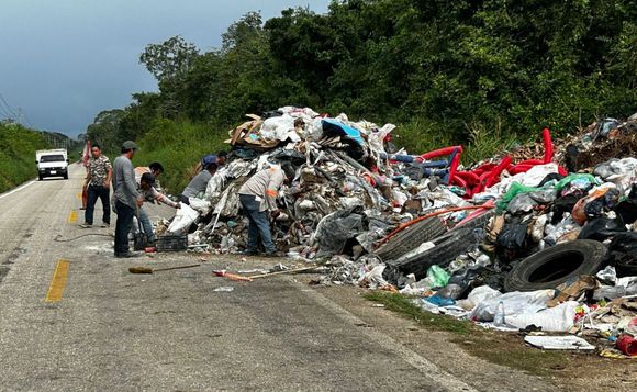 PODER Y CRÍTICA | REDACCIÓN | El relleno sanitario de Felipe Carrillo Puerto colapsó por una mala distribución y acomodo de los desechos que hasta los residuos llegaron a la vía federal, causando riesgo y una mala imagen.