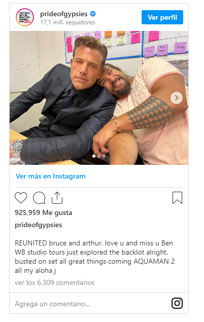 Momoa subió una fotografía a Instagram donde se le ve sonriente al lado de Affleck. Lo que más sorprendió es que la imagen confirmaría el regreso de ‘Batman’ para la segunda entrega de ‘Aquaman’.