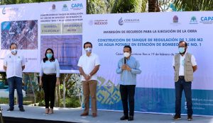 Cozumel, Q. Roo, Viernes 19 de Febrero de 2021, poderycrítica.- Para abatir el rezago en el suministro de agua potable y prestar un mejor servicio a los habitantes y visitantes, el gobernador Carlos Joaquín inició hoy la inversión de recursos para construir un tanque de regulación, de mil 500 metros cúbicos, en la estación de bombeo base No. 1 en Cozumel.
