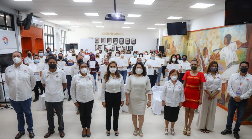 La Presidenta Municipal Mara Lezama entregó los documentos a 39 colaboradores de 23 dependencias municipales que culminaron la capacitación, que les acredita como funcionarios con habilidades y destrezas excepcionales, para que continúen desarrollándose con niveles de excelencia en su vida laboral.