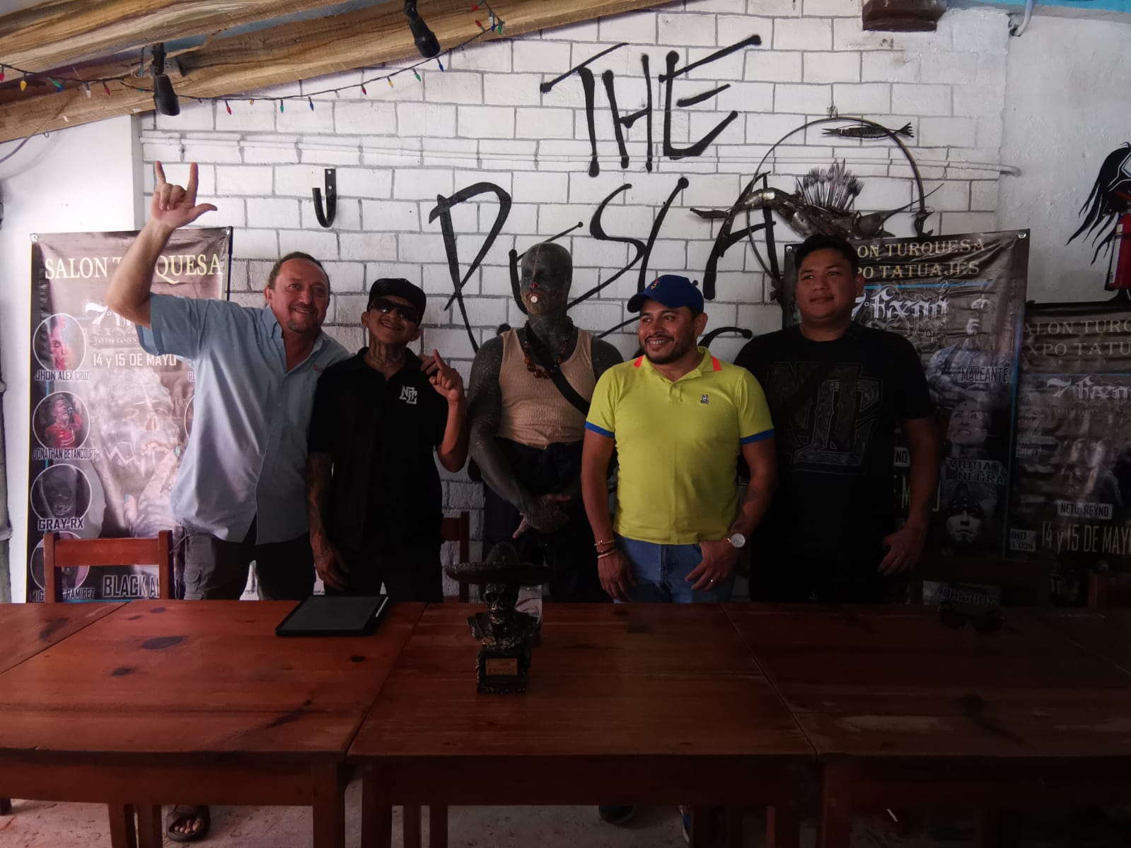 El día de ayer se presentó la rueda de prensa para la expo Tattoo y fue dada por Nacho del restaurante Pescaditos, Black Alíen, Brandon, Alan Medina de Mentes Creativas y Rey Gómez.