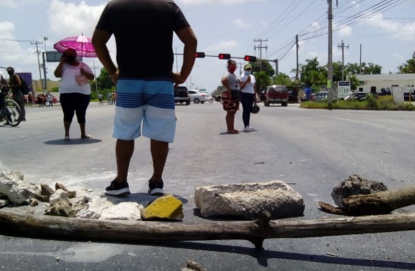 BLOQUEAN EL CRUCE DE LA AVENIDA JOSÉ LÓPEZ PORTILLO Y LA VÍA CONOCIDA COMO GAS AUTO VECINOS DE 35 COLONIAS EN CANCÚN