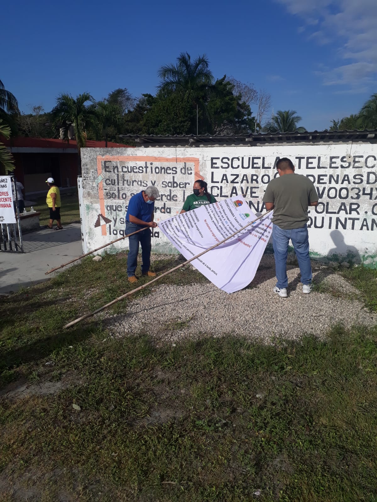 PODER Y CRÍTICA | SAMUEL CAAMAL | Los maestros de la telesecundaria Lázaro Cárdenas del Río del poblado de Xul-Ha, Othón P. Blanco, se manifestaron para pedir a las autoridades educativas que le den prioridad al mantenimiento de las escuelas de las comunidades rurales, ya que muchas de estas no cuentan con agua los baños y algunas están en pésimo estado.