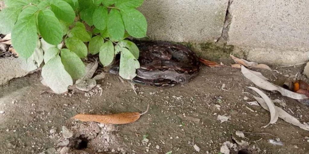 Vecinos solicitaron ayuda al 911 tras encontrar una víbora en un domicilio ubicado en la Calle Plutarco Elias Calles #390 con Andrés Quintana Roo.