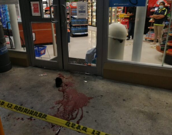 Playa del Carmen, Quintana Roo, martes 08 de junio del 2021, poderycritica.- Alcoholizado sujeto se rebana el pie con los cristales de una puerta de cristal de tienda de conveniencia de Playa del Carmen que rompió porque no le quisieron vender cervezas.