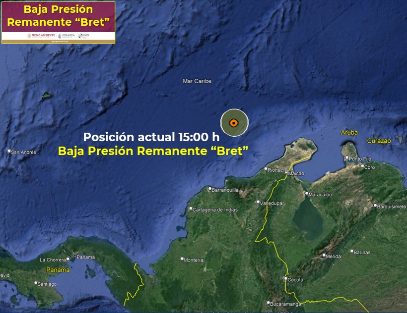 PODER Y CRÍTICA | REDACCIÓN | “Bret” se ha convertido en una baja presión remanente en el Mar Caribe. Por lo que, se emite la última información de este ciclón tropical.