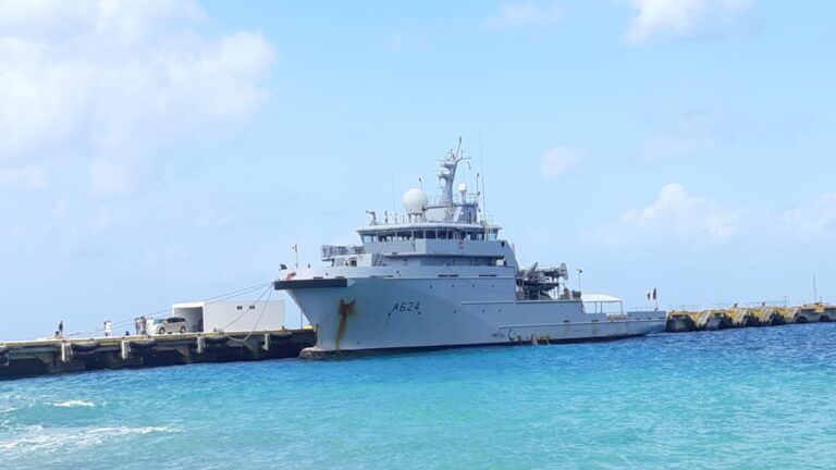 BUQUE DE LA MARINA DE FRANCIA ATRACA EN EL MUELLE DE PUNTA LANGOSTA EN COZUMEL