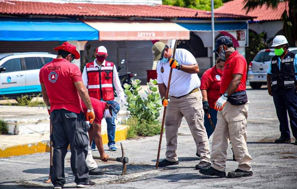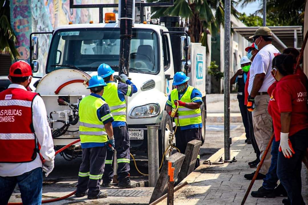 Isla Mujeres, Q. Roo, Jueves 28 de Mayo de 2020, poderycrítica.- Brigadas de Obras Públicas, Protección Civil y Aguakan llevan a cabo trabajos preventivos con el fin de contribuir en el cuidado de la integridad física y de los bienes de las familias isleñas ante el inicio de la temporada de lluvias, el gobierno que encabeza Juan Carrillo Soberanis a través de la dirección de Obras Públicas y en coordinación con Protección Civil y la empresa Aguakan, lleva a cabo una intensa jornada de desazolve de 40 pozos de absorción en la ínsula.