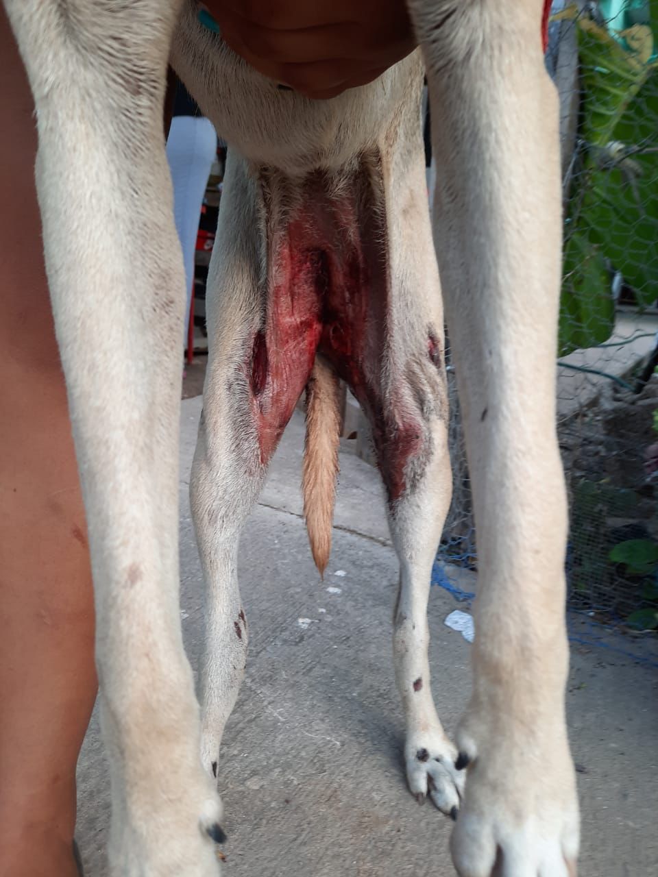 Recordó que fue encontrada la perrita por integrantes de otra asociación civil y se detectó que se le realizaron varias heridas con un arma punzo cortante en sus genitales, patas traseras e intentaron degollarla, por lo que de inmediato fue llevada a veterinaria para evitar que se siguiera desangrando.