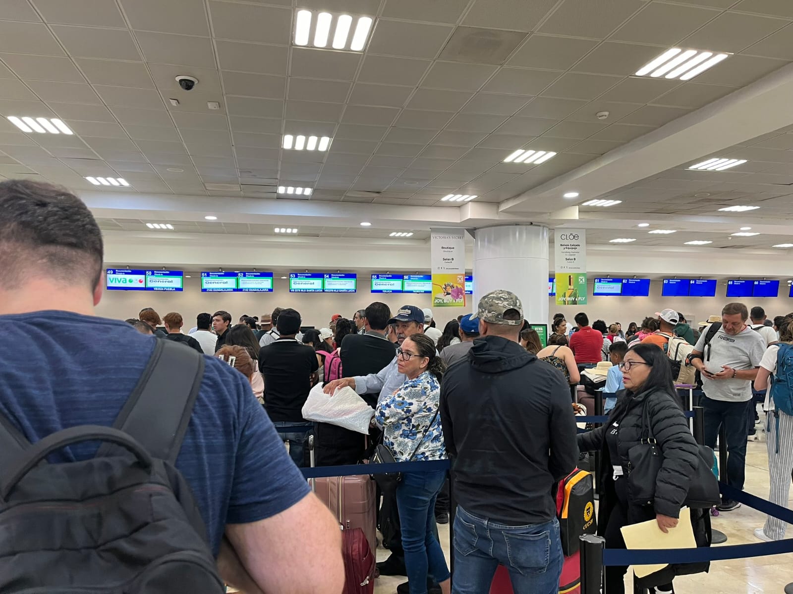 De acuerdo con las imágenes, la estación área de Cancún luce completamente saturada, los pasajeros siguen teniendo problemas para el registro y asignación de vuelos.