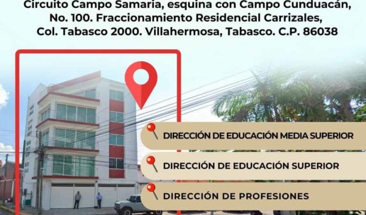 PODER Y CRÍTICA | REDACCIÓN | La Secretaría de Educación del Estado de Tabasco (Setab) informó sobre el cambio de sede de la Subsecretaría de Educación Media Superior y Superior, junto con sus direcciones adscritas.