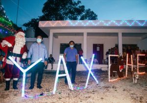 Tulum, Q. Roo, Domingo 06 de Diciembre del 2020, poderycrítica.- Las luces navideñas dieron vida a la comunidad de Yaxché y con ello culmina una intensa jornada de servicios y rescate de espacios públicos desarrollada por brigadas de jóvenes del gobierno municipal de Tulum, que encabeza el presidente municipal, Víctor Mas Tah.