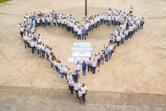 También se realizó la toma de la fotografía conmemorativa, en la que los integrantes del contingente escenificaron el Corazón Azul que representa la tristeza de quienes sufren la trata, al tiempo que nos recuerda la insensibilidad de aquellos que compran y venden a otros seres humanos.