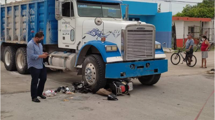 Cancún, Q. Roo, Miércoles 11 de Agosto de 2021, poderycrítica.- Una mujer que viajaba en una motocicleta fue atropellada por un camión de volquete esta tarde en la Región 103 de esta ciudad.