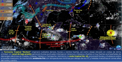 Asimismo, se esperan vientos del Norte y Noreste de 15 a 30 kilómetros por hora, y temperaturas que podrían oscilar entre los 33 y 35 grados celsius las máximas y 22 y 24 grados las mínimas.