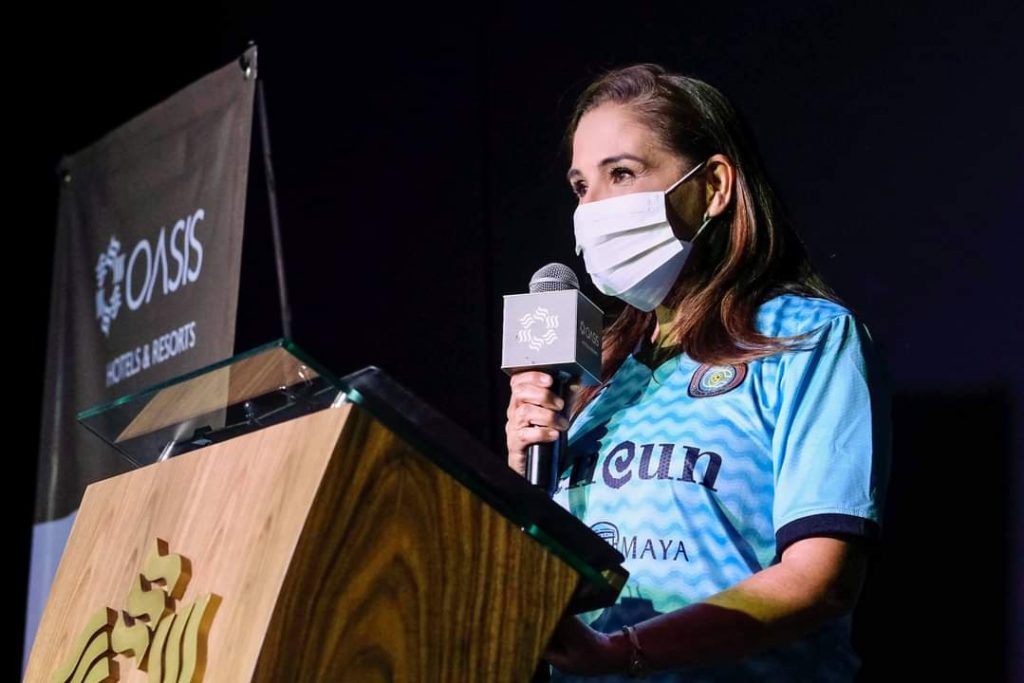Cancún, Q. Roo, Lunes 17 de Agosto de 2020, poderycrítica.- La presidente municipal de Benito Juárez, Mara Lezama, asistió esta tarde a la presentación de los uniformes del equipo de fútbol profesional, Cancún FC que participará en la Liga de Expansión.