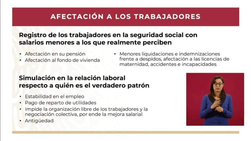 Estas prácticas ilegales del outsourcing afecta a los trabajadores al inscribirlos en el Seguro Social con bajos salarios, peor además tienen repercusiones en los fondos de vivienda, las liquidaciones, indemnizaciones, licencias de maternidad, accidentes e incapacidades.