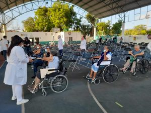 La meta de vacunación en la ciudad, que concentra a más de 54 mil abuelitas y abuelitos, es de 6 mil dosis del laboratorio SINOVAC, explicó en entrevista la presidente municipal Mara Lezama.