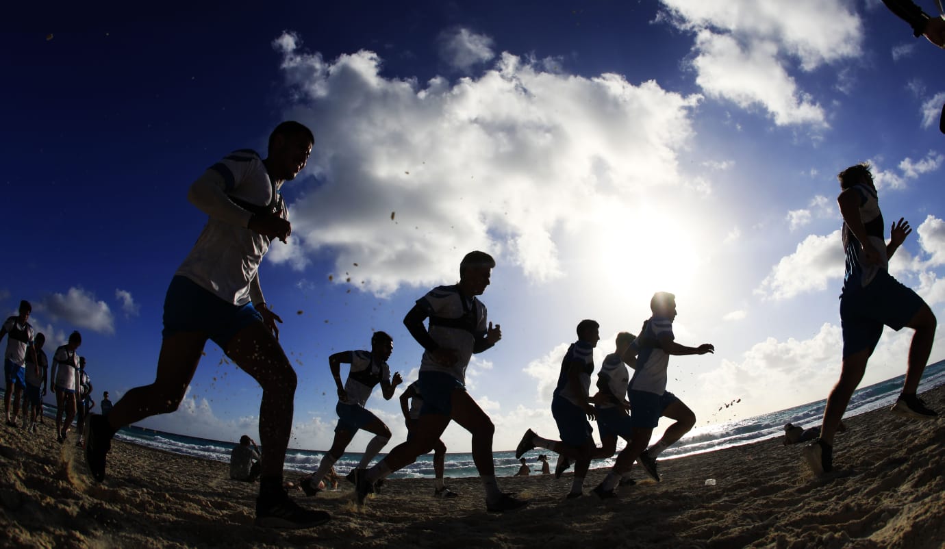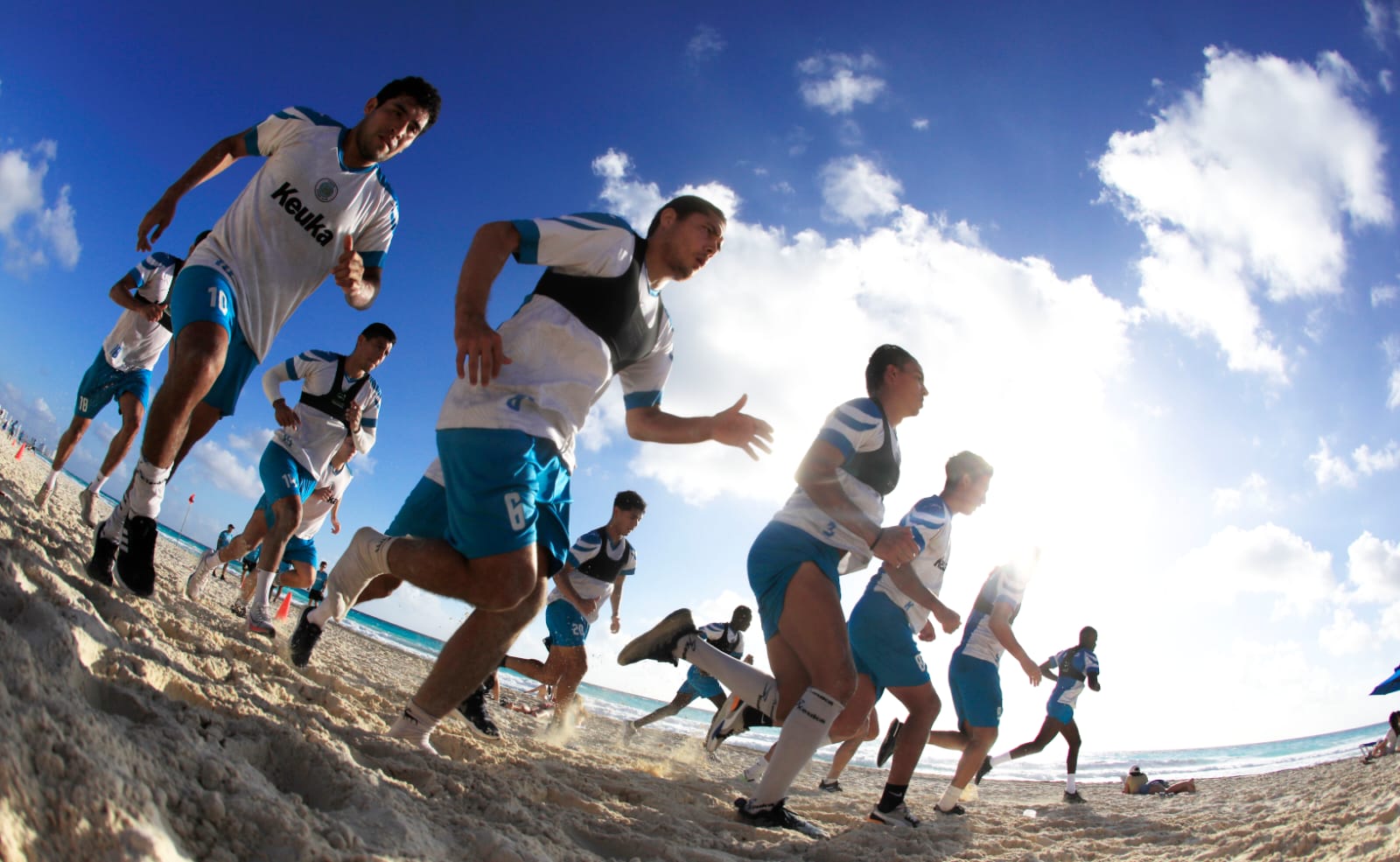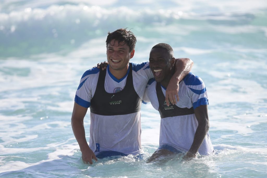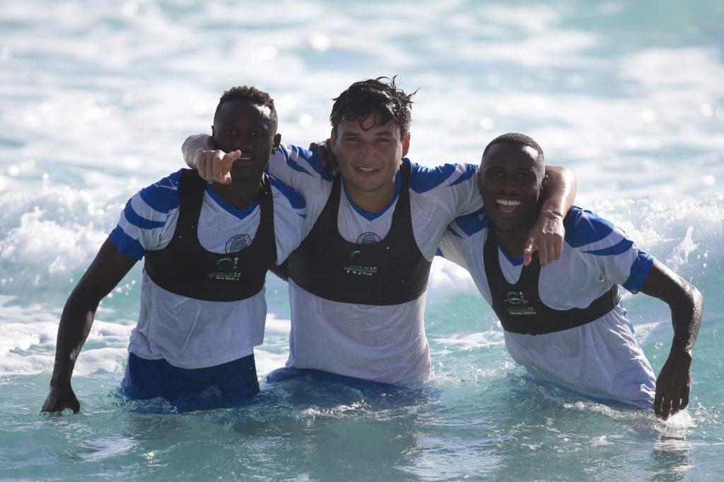 PODER Y CRÍTICA | Cancún, Quintana Roo.- Cancún FC continúa con su pretemporada rumbo al Torneo Clausura 2022 de la Liga de Expansión MX. Liderados por el profesor, Federico Vilar, los caribeños, literal, hicieron ‘La Ola’ en Playa Marlín, rodeados de las bellezas naturales que ofrece el ‘paraíso’.