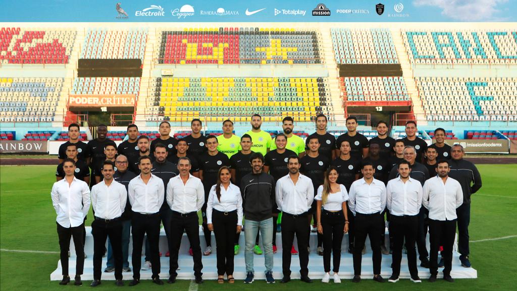 A comparación de la fotografía anterior, con la playa y mar de fondo, en esta ocasión, el escenario fue su casa, el inmueble de la supermanzana 21. Ubicados en el círculo central, posaron los jugadores del plantel, cuerpo técnico y directivos del Club.