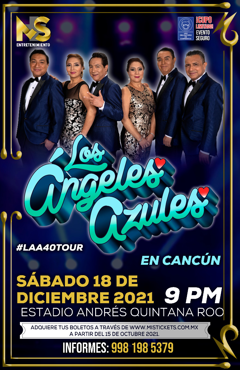 Cancún, Q. Roo, viernes 15 de Octubre de 2021, poderycrítica.- El Sábado 18 de diciembre a las 9:00 pm en el Estadio Andrés Quintana Roo, se presentarán Los Ángeles Azules en concierto.