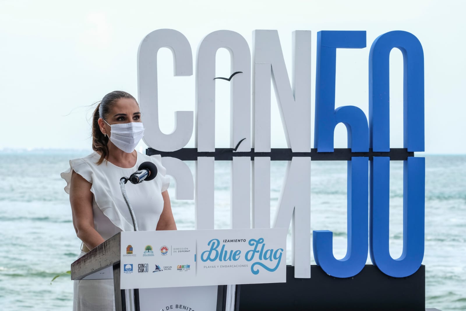 La Primera Edil recordó que, desde el inicio de su administración, Cancún contaba con 7 reconocimientos Blue Flag, los cuales hoy, a un año y nueve meses de la administración que encabeza, suman en total 35 banderas azules.