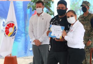 La Presidente Municipal Mara Lezama, hizo entrega simbólica de reconocimientos a los muralistas que plasmaron en las playas públicas obras con mensajes de conciencia ambiental que podrán contemplar tanto locales como turistas y, posteriormente, se realizó el izamiento de bandera Blue Flag, acto con el que se dio inicio a la temporada 2021-2022.
