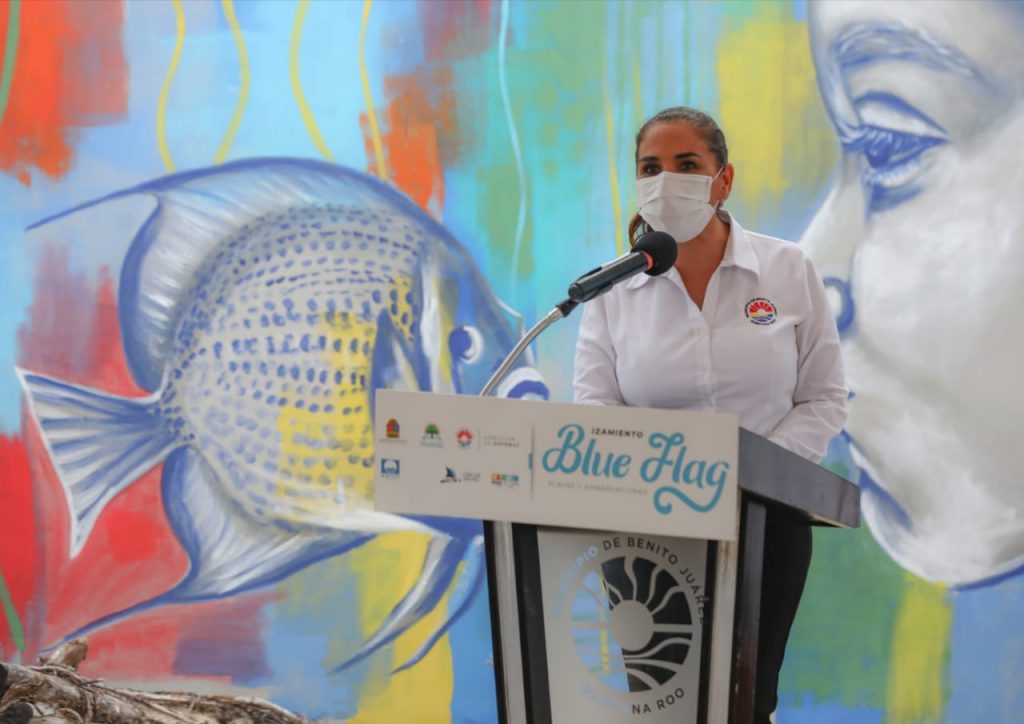 Cancún, Q. Roo, Martes 29 de Junio de 2021, poderycrítica.- “Hoy somos el primer municipio a nivel nacional en izar un total de 39 distintivos Blue Flag en la temporada 2021-2022, con lo cual nos mantenemos en la primera posición de México en estas certificaciones y en embarcaciones de turismo sostenible”, manifestó la Presidente Municipal Mara Lezama, al recibir las respectivas banderas azules por parte de la Fundación Europea de Educación Ambiental (FEE).