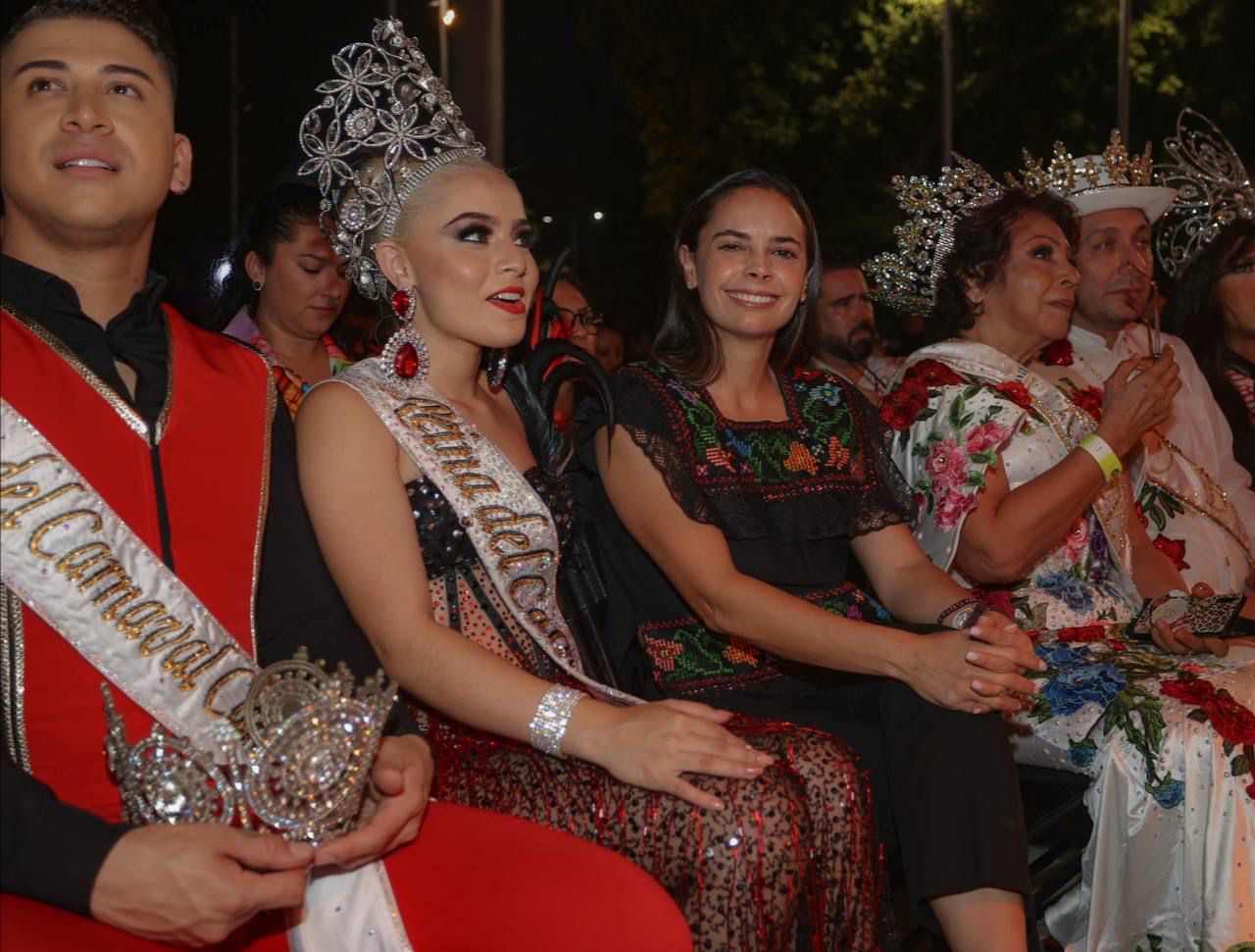 En ese contexto de festividad y a pesar de la lluvia, la Presidenta Municipal, Ana Paty Peralta, se integró a las gradas donde esperaban las comparsas, para mantenerse cercana, saludando y felicitando a las y los bailarines por ser parte fundamental de nuestro carnaval, además, se mezcló entre los reyes, reinas y familias que disfrutaban de las presentaciones artísticas, expresando que eso es justamente lo que se busca, crear comunidades de bienestar donde todas y todos puedan convivir felizmente.
