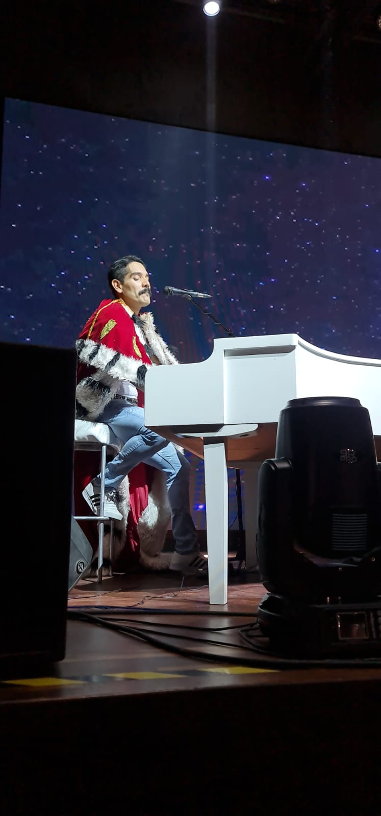 El momento de recibir a Freddie Mercury en el escenario llegó con la presencia de Roy Gómez, quién ataviado con la clásica chaqueta amarilla abrió la noche con el tema One Visión.