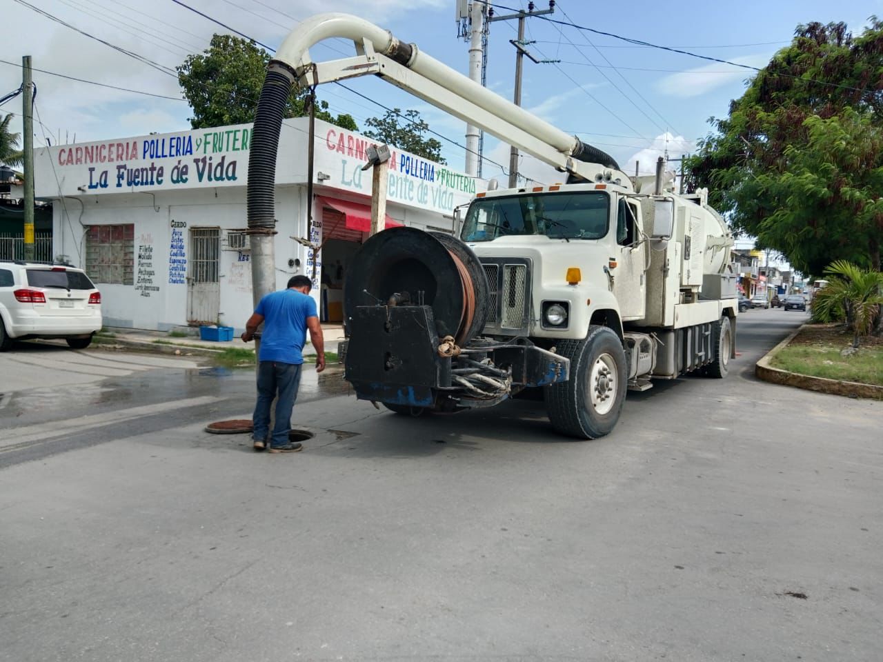 Con apoyo de camiones tipo vactor y brigadas con personal operativo de la CAPA, este lunes se atiende la zona noroeste de la ciudad, en puntos de las avenidas José María Morelos con San Salvador, Camelias, Emiliano Zapata, Palermo con Tabi , Cochuan, Maxuxac con 4 de marzo, entre otros.