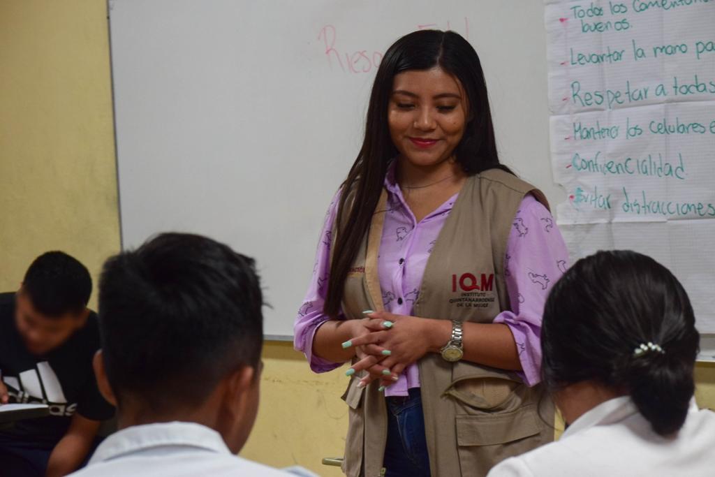 A través del Nuevo Acuerdo por el Bienestar y Desarrollo de Quintana Roo, que impulsa la gobernadora Mara Lezama Espinosa y con el apoyo del Gobierno de México, continuamos gestionando proyectos a favor de las mujeres quintanarroenses, por ello el IQM a través de los dos CECOVIM, en Benito Juárez y Othón P. Blanco, seguimos sensibilizando de manera permanente a las adolescencias de nivel secundaria y bachillerato en la prevención de la violencia contra las mujeres, dijo.