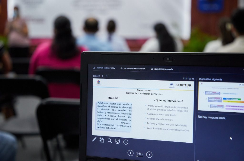 Con el apoyo de la maestra Larissa Kreutz Immich, directora de Atención al turista de la Secretaría de turismo del estado de Quintana Roo (SEDETUR), se llevó a cabo el adiestramiento “Guest locator” para ayudar a identificar el estatus de ubicación y situación que guardan los turistas que durante su visita a cualquier municipio del estado son sorprendidos por el impacto de algún ciclón tropical.