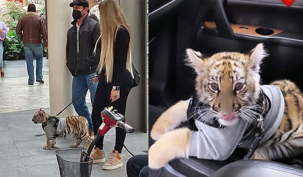 En redes sociales una serie de usuarios denunció un caso de maltrato animal y compra ilegal de especies exóticas luego de que una mujer fuera vista paseando a un cachorro de tigre en las instalaciones de un centro comercial.