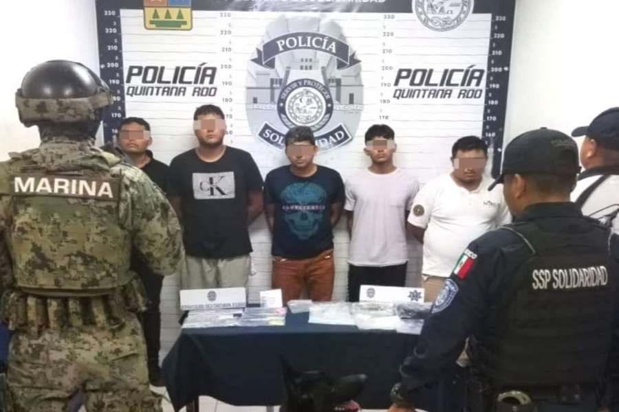 PODER Y CRÍTICA | REDACCIÓN | Con diversas dosis de narcóticos en su poder, cinco presuntos narcomenudistas fueron detenidos por elementos de la Policía Turística, en la Quinta Avenida de Playa del Carmen.