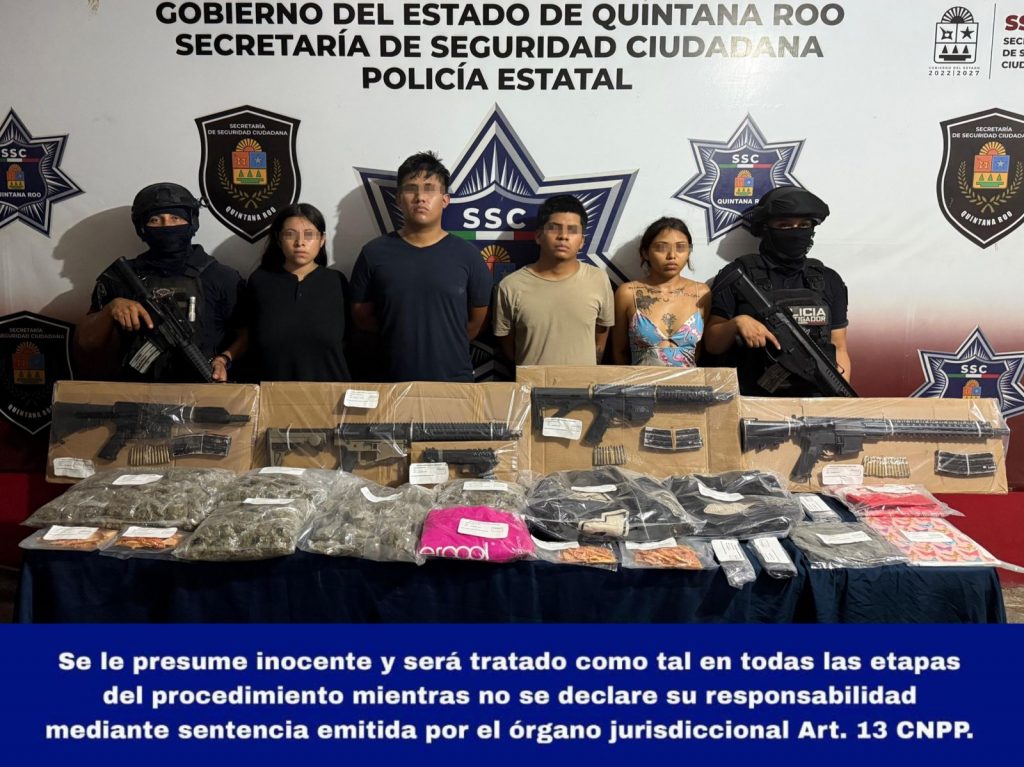 PODER Y CRÍTICA | REDACCIÓN | Se realiza la detención de Luis Ángel “N”, Bruno Rafael “N”, Jeimmi Carolina “N” y Sarai “N”, presuntas implicadas en delitos Contra la Salud y por el delito de Violación a la Ley Federal de Armas de Fuego y Explosivos.