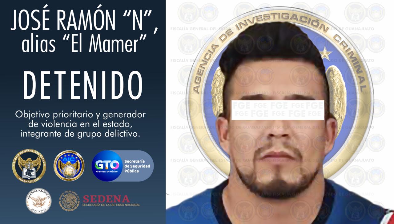 Guanajuato, Guanajuto, Viernes 27 de noviembre de 2020, poderycrítica.- José Ramón “N”, apodado “El Mamer”, identificado como un generador de violencia en el estado de Guanajuato, ha sido capturado. Resultado del trabajo de investigación encabezado por Agentes de Investigación Criminal de la FGEG en un operativo desplegado en el estado de