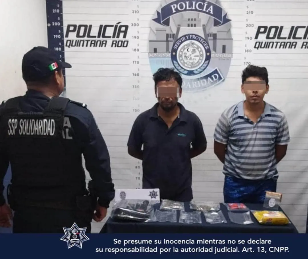 Cerca del cruce de la avenida De las Naciones con Chemuyil, fueron asegurados Eduardo “N” de 23 años, originario de Yucatán y César “N” de 50 años de edad, procedente de Veracruz.