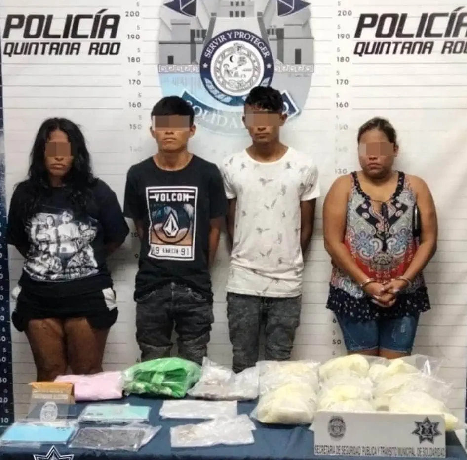 La primera detención fue en la colonia irregular In House, en donde fueron detenidos Nayeli “N” de 37 años de edad, originaria de Acapulco, Roxana “N” de 23 años, Victor “N” de 18 años y Jesús “N” de 18 años, originarios de Quintana Roo.