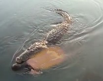 El ejemplar fue captado en la Laguna del Carpintero mientras escondía el cuerpo de su víctima, un hombre que solo vestía playera negra y calcetines.