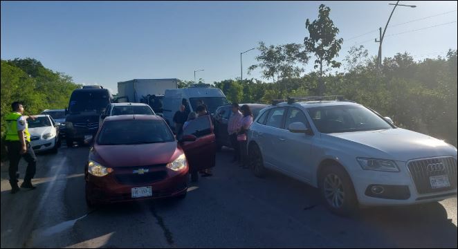 Poder y Crítica | Redacción | Accidente vehicular en el que estuvieron involucradas varias unidades, provocó esta mañana severos problemas a la circulación en las salidas de Cancún.